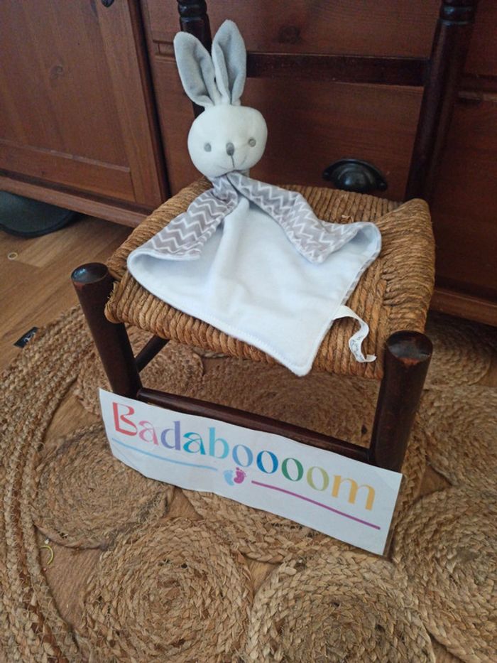 Doudou lapin blanc gris tbe - photo numéro 1