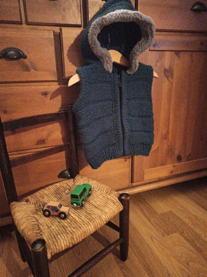 Gilet laine 3 ans fait main tbe