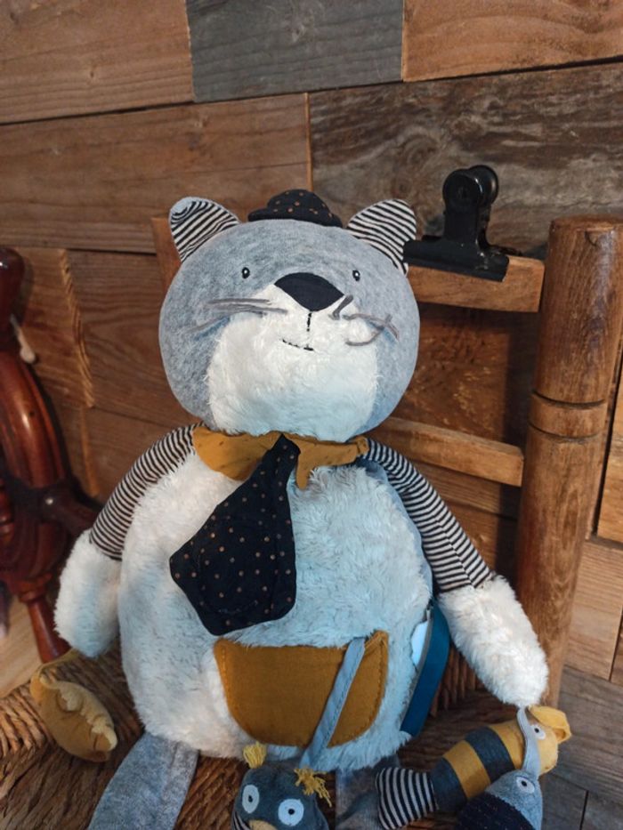 Peluche d'activité Le chat "les moustaches" Moulin roty BE ( déjà lavé, voir miroir cravate ) N'hésitez pas à faire un lot pour économiser sur les frais de port Pour voir les autres articles de la même catégorie : #badaboooom_peluches #badaboooom_moulinroty