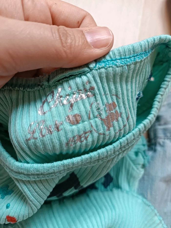 Ensemble composé d'une robe en jean Kimbaloo et d'un t-shirt chipie 86 cm Très bon état