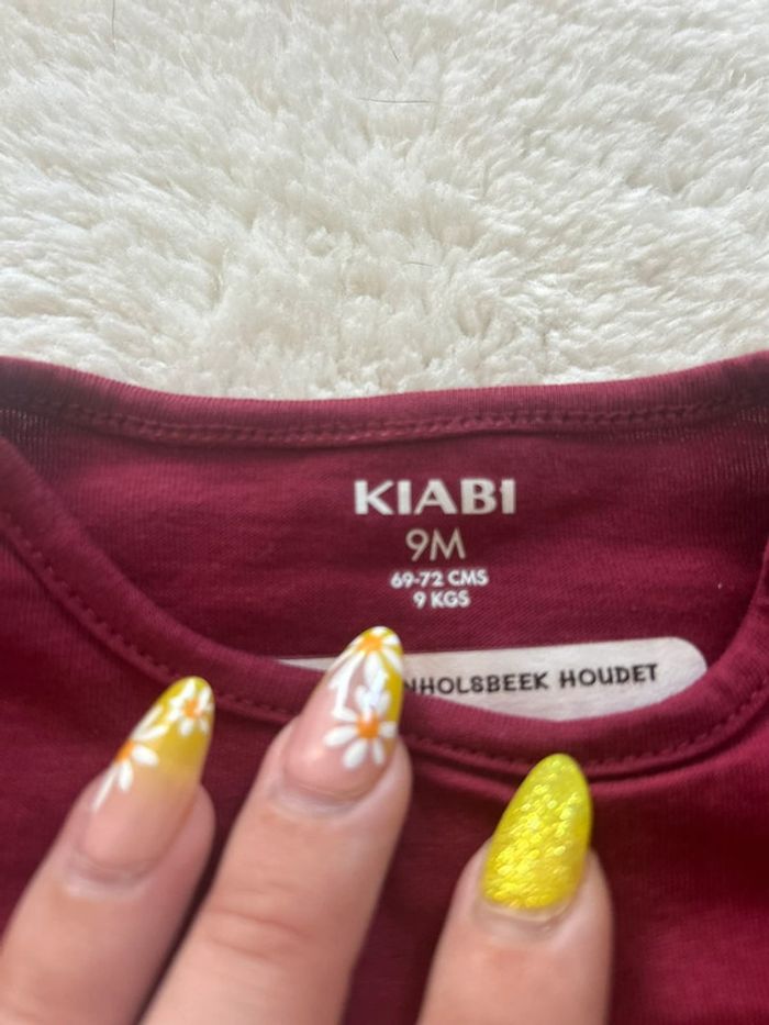 T-shirt manche longue bordeaux hello darling Taille 9 mois Marque kiabi En très bon état #charlinelolfille9mois N’hésitez pas si vous avez des questions