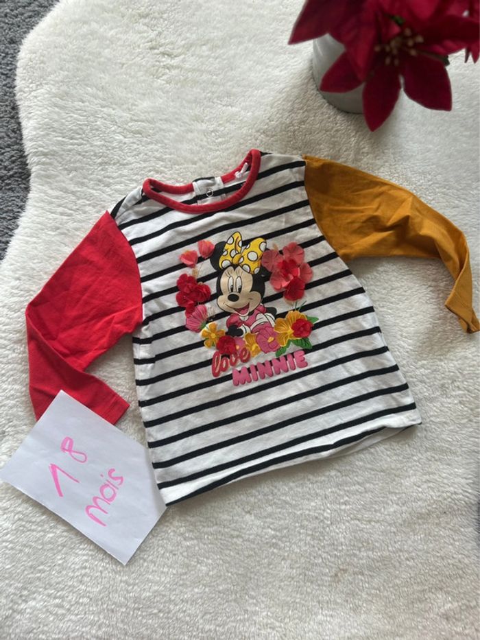 T-shirt Minnie rouge jaune noir et blanc Marque orchestra Taille 18 mois En très bon état #charlinelolfille18mois N’hésitez pas si vous avez des questions