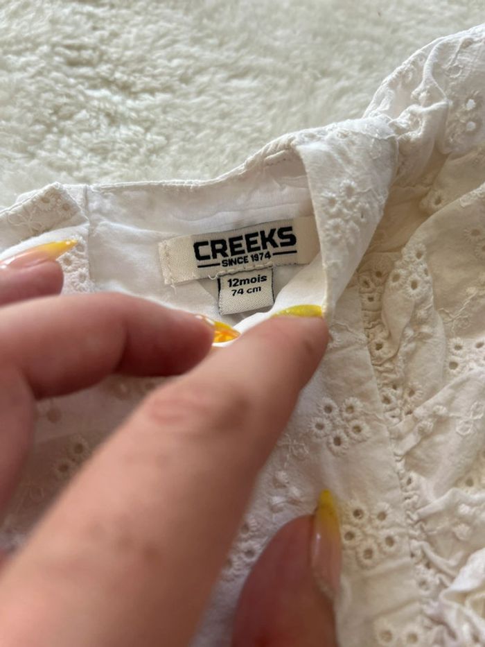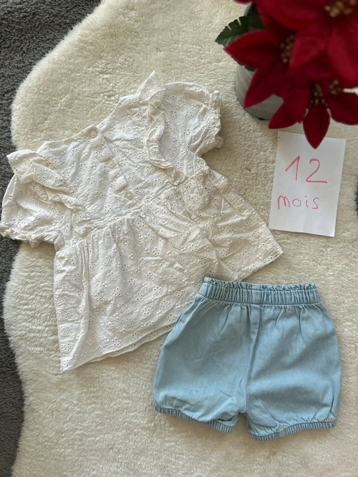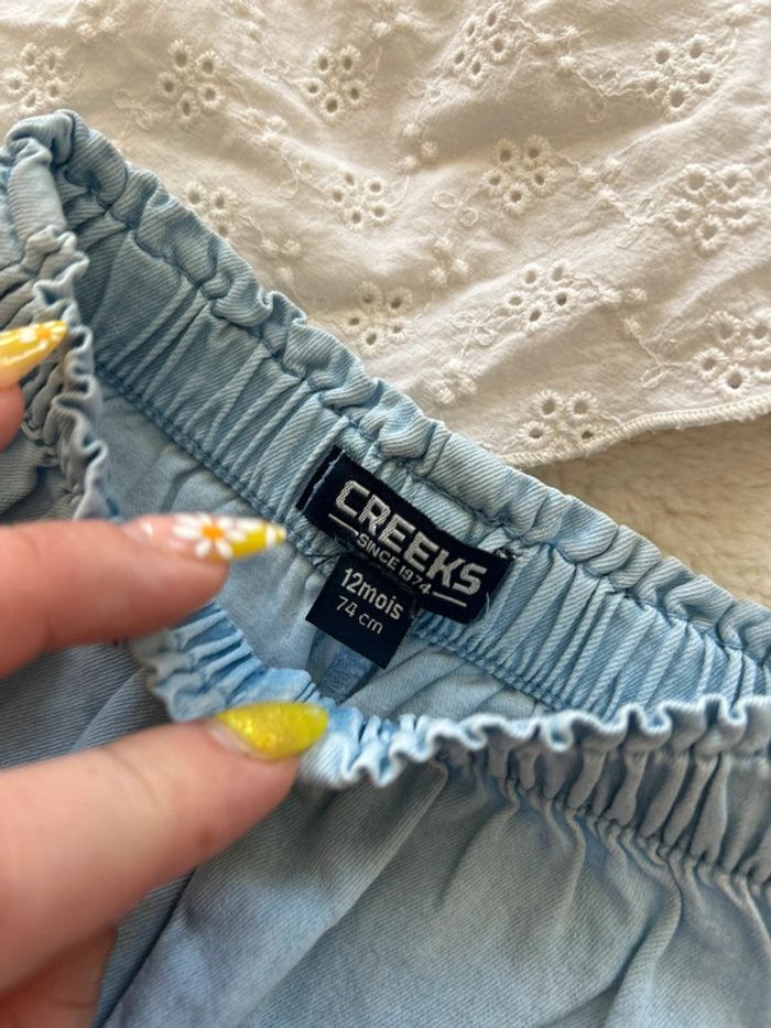 Ensemble avec son haut blanc avec motif dentelle Son short en jean bleu clair Taille 12 mois Marque creeks En très bon état #charlinelolfille12mois N’hésitez pas si vous avez des questions