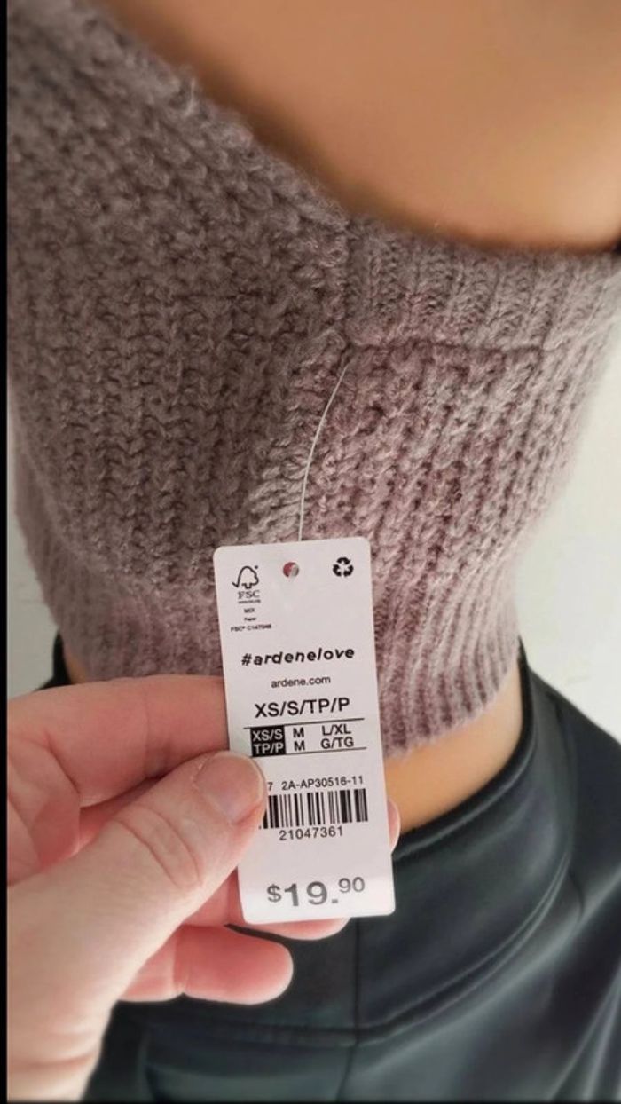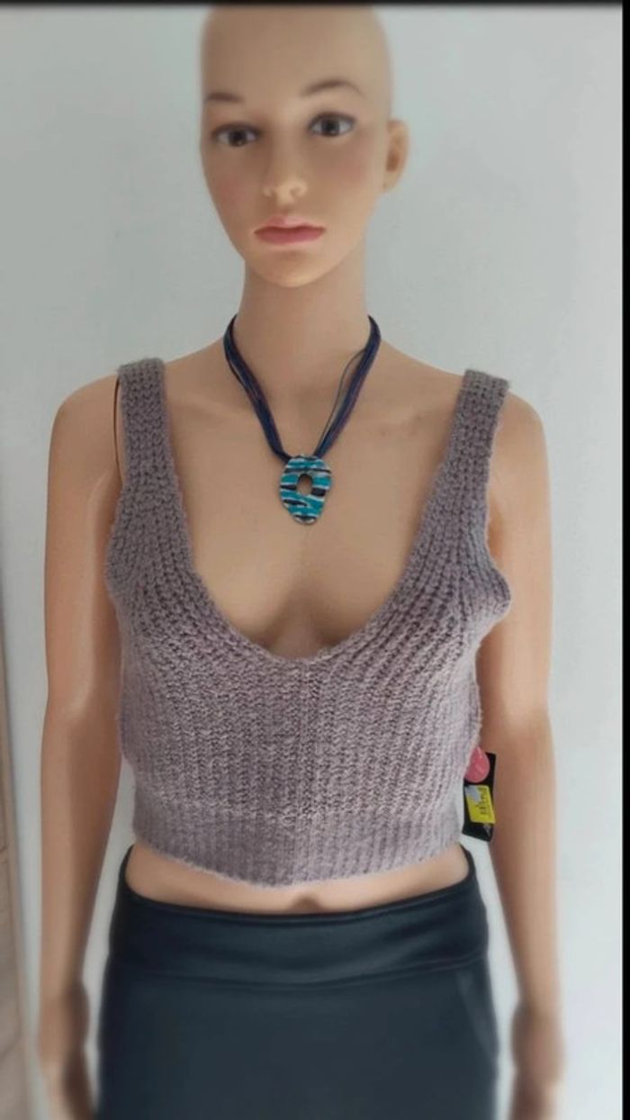 Top haut débardeur court effet tricoté taupe taille xs/s - photo numéro 3