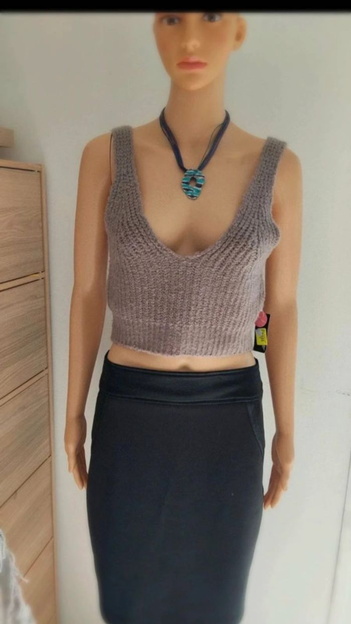 Top haut débardeur court effet tricoté taupe taille xs/s - photo numéro 5