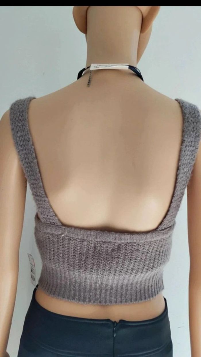 Top haut débardeur court effet tricoté taupe taille xs/s - photo numéro 7