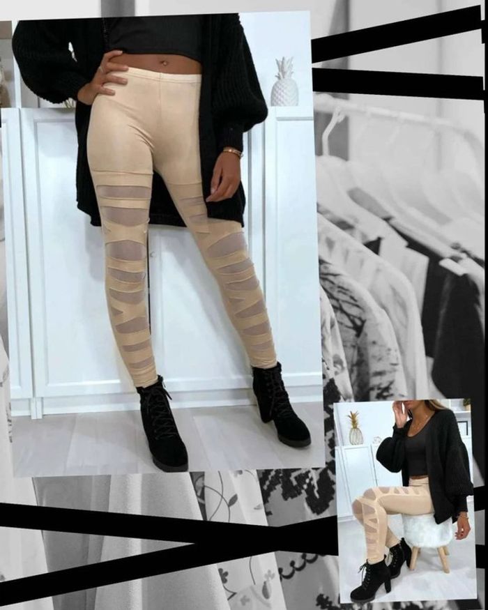 Legging beige  avec motif  coupé et  doublé en résille taille  unique - photo numéro 3