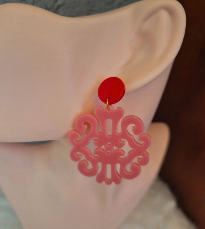 Boucles d’oreilles rose et rouge 💖🌹 #Bijoux #Mode - photo numéro 1