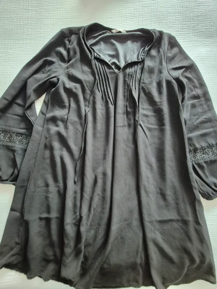 Robe noire Camaïeu manches longues avec effet dentelle taille 38 - photo numéro 1