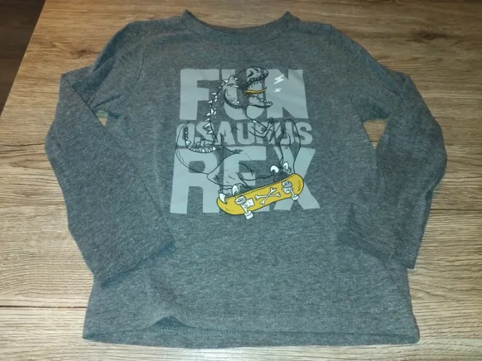 Bonjour, je vends ce tee shirt gris motif dinosaure de la marque kiabi taille 5ans en très bon état.