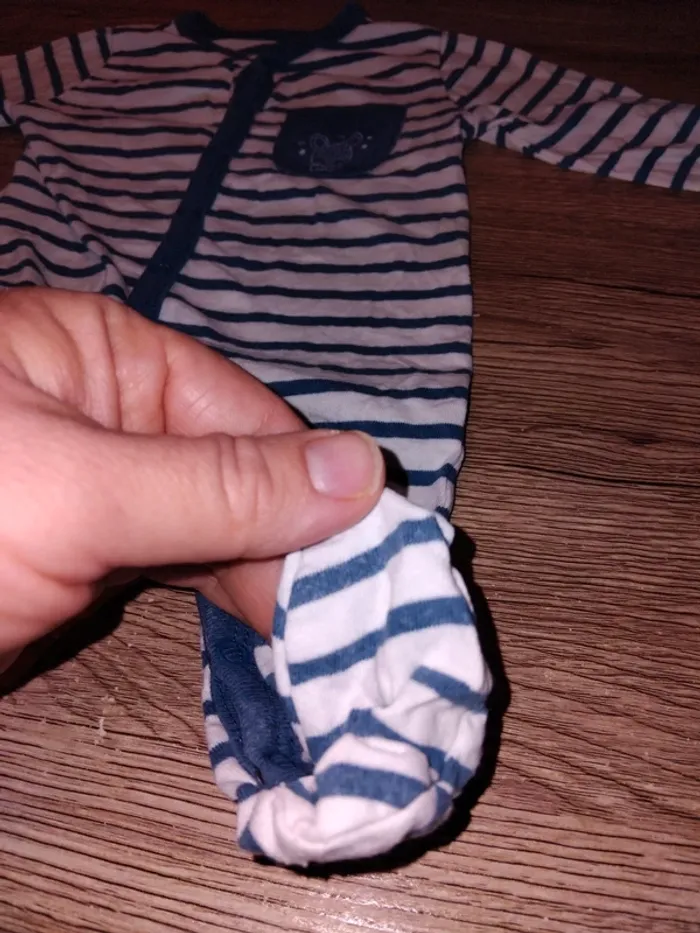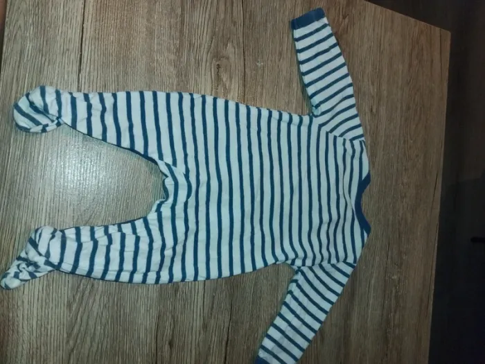 Bonjour, je vends ce pyjama rayé blanc et bleu de la marque Grain de blé taille 1mois en très bon état.