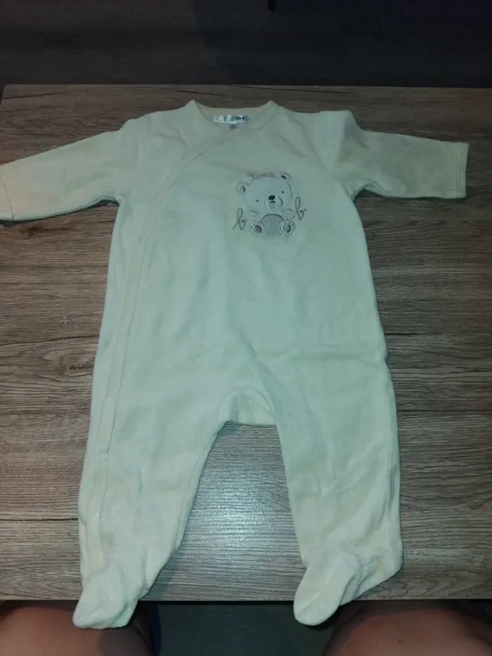 Bonjour, je vends ce pyjama crème de la marque kitchoun taille 9mois en très bon état.