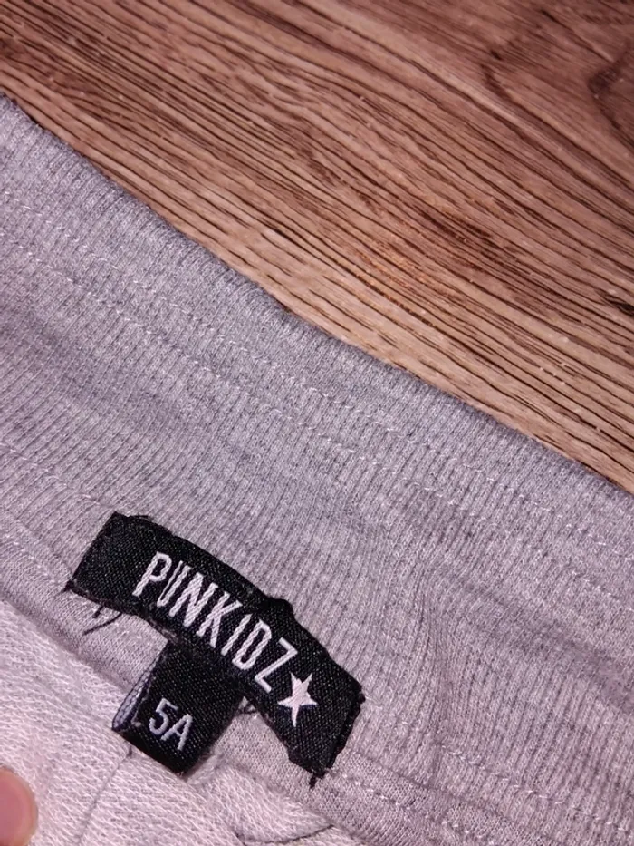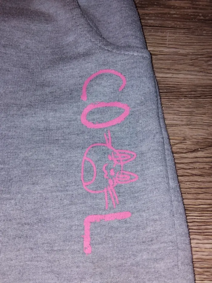 Bonjour, je vends ce bas de jogging gris écritures rose fluo de la marque Punkidz taille 5ans en très bon état.