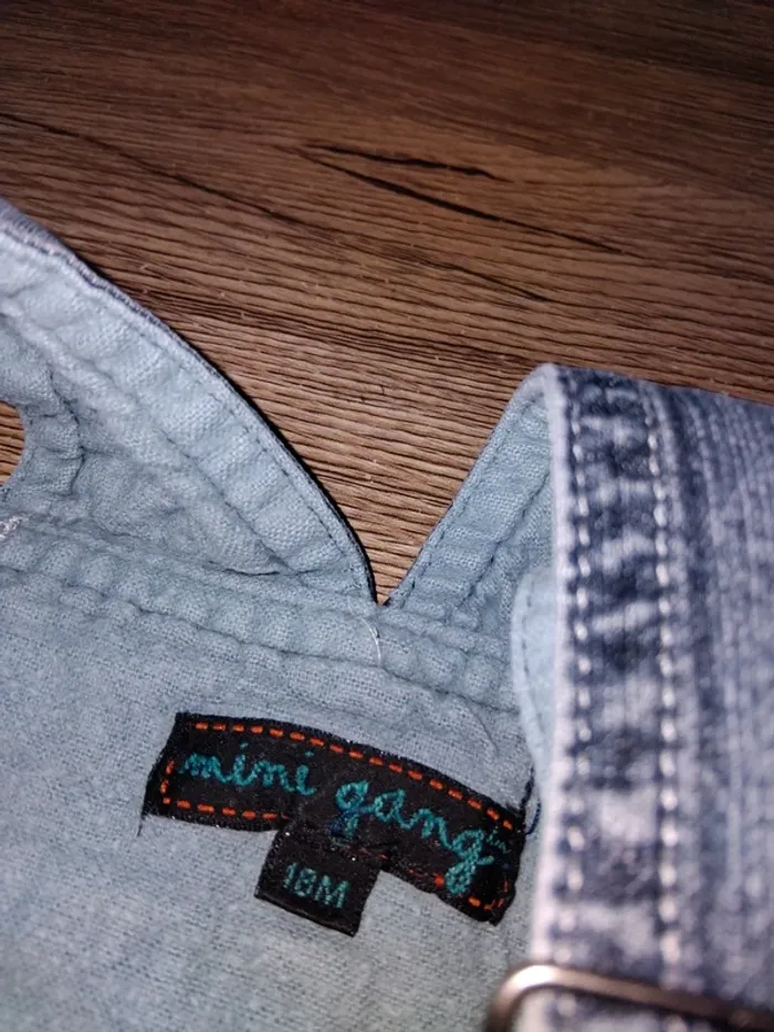 Bonjour, je vends cette salopette en jean de la mini gang taille 18mois en bon état.