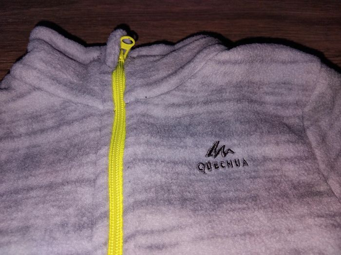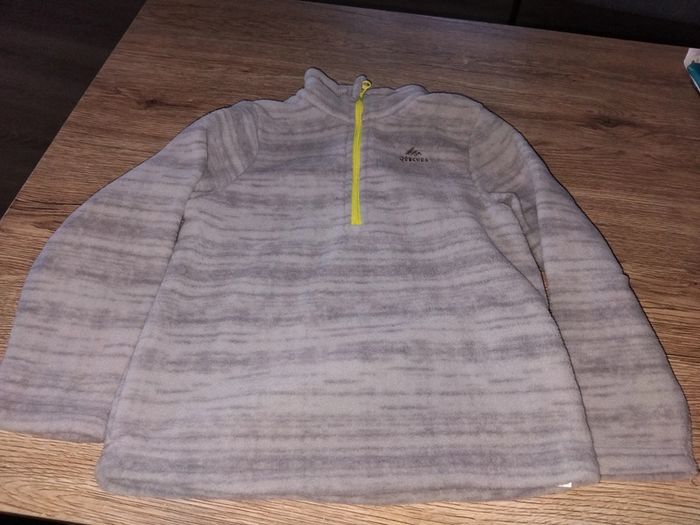 Bonjour, je vends cette polaire grise avec fermeture fluo de la marque Quechua taille 2/3ans en très bon état.