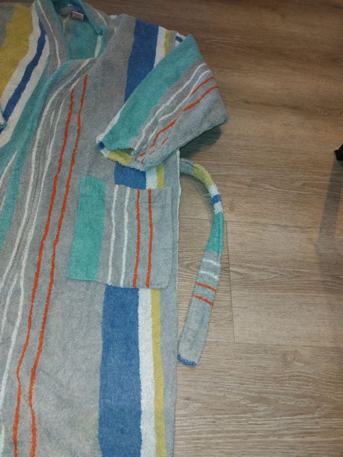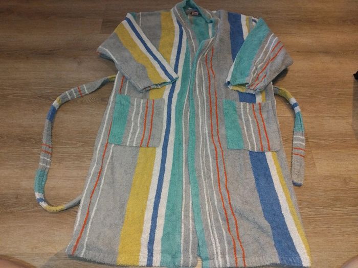 Bonjour, je vends ce peignoir multicolore de la marque Françoise Saget taille 42/44 en bon état. Lavé maison non fumeur.