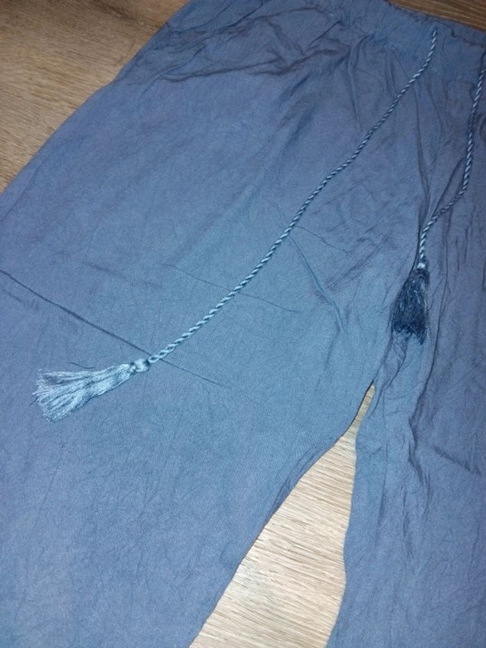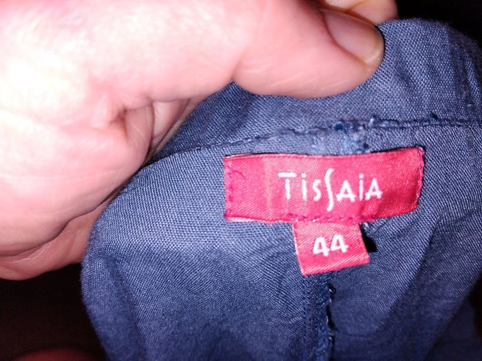 Bonjour, je vends ce pantalon fluide bleu de la marque Tissaia taille 44 en très bon état. Lavé maison non fumeur.