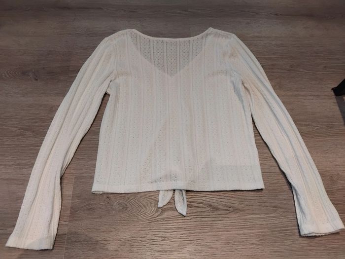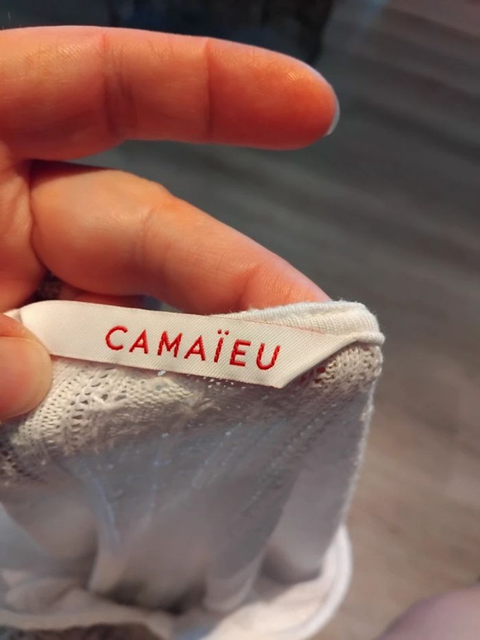 Bonjour, je vends ce tee shirt à manches longues blanc avec motifs de la marque Camaïeu taille M en très bon état. Lavé maison non fumeur.