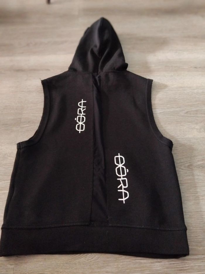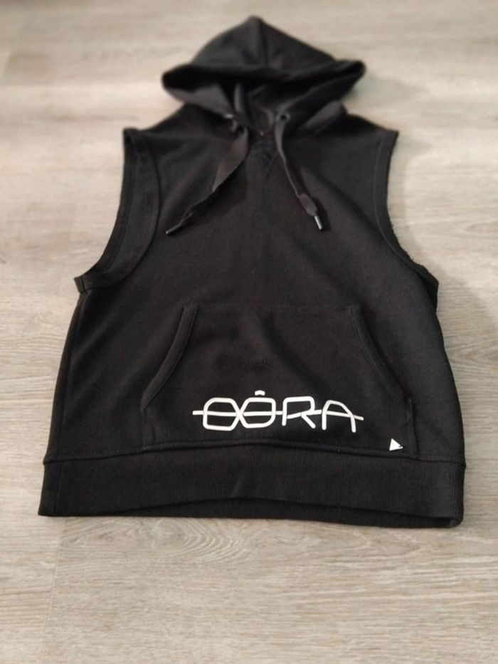 Bonjour, je vends ce débardeur noir écritures blanches à capuche de la marque Oôra by M. Pokora taille M en très bon état.