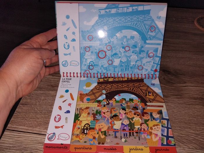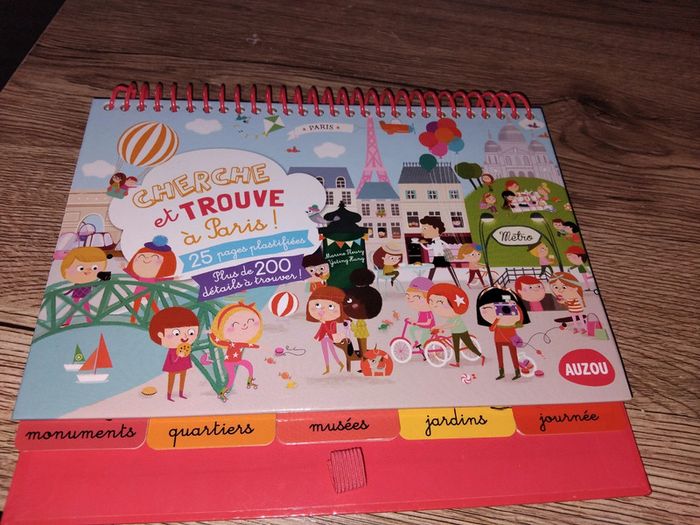 Bonjour, je vends ce livre Cherche et Trouve à Paris en très bon état. On peut entourer les objets à trouver avec un feutre effaçable (vendu sans). Il y a les solutions.