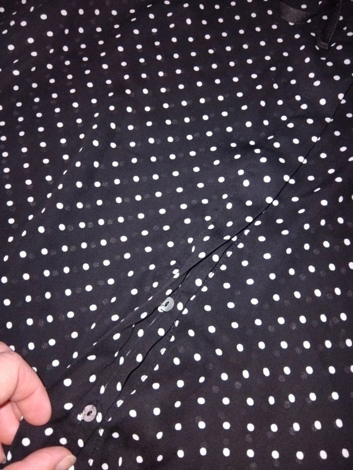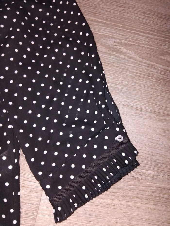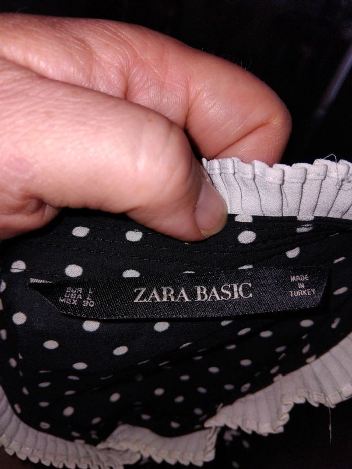 Bonjour, je vends cette chemise noire à pois blancs avec col de la marque Zara basics taille L en très bon état. Lavé maison non fumeur.