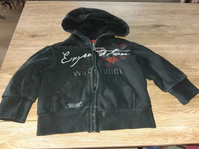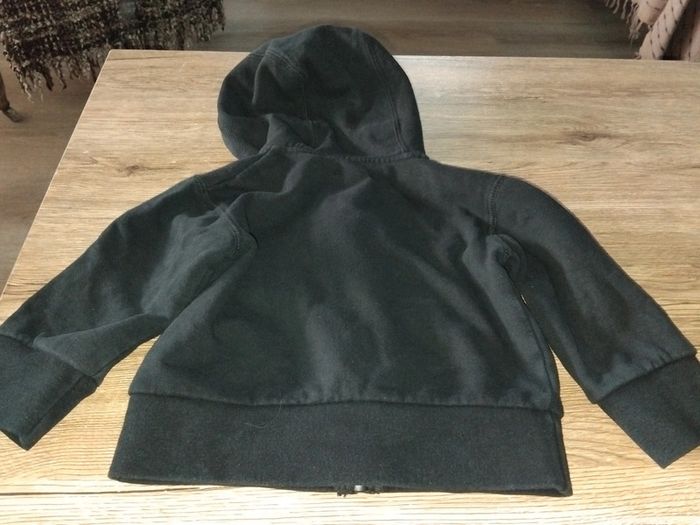 Bonjour, je vends ce gilet noir avec motifs à capuche de la marque orchestra taille 2ans en très bon état. Lavé maison non fumeur.