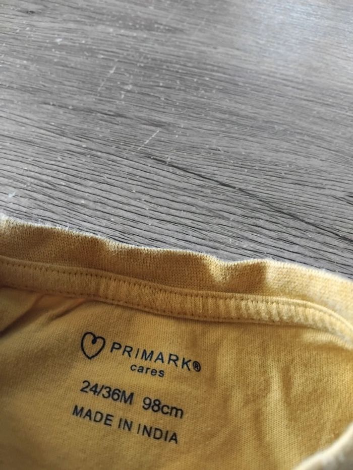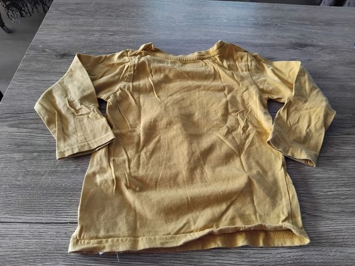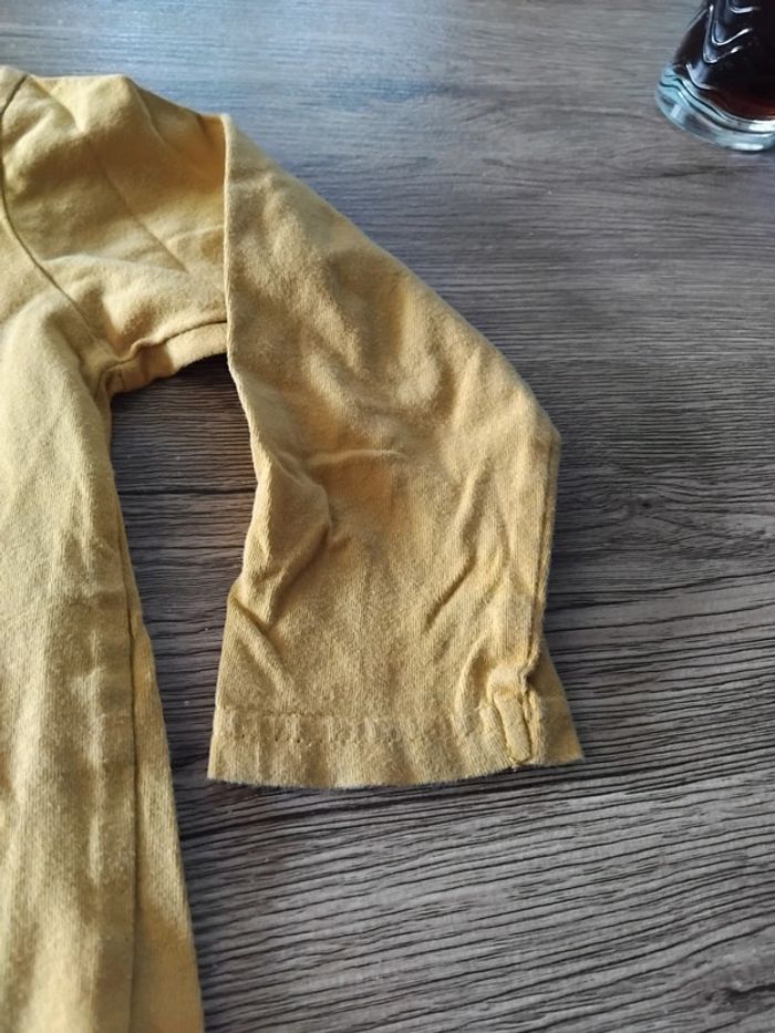 Bonjour, je vends ce tee shirt à manches longues jaune avec motifs de la marque Primark taille 24/36mois en très bon état.