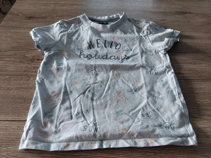 Bonjour, je vends ce tee shirt crème avec motifs de la marque kiabi taille 24mois en très bon état.