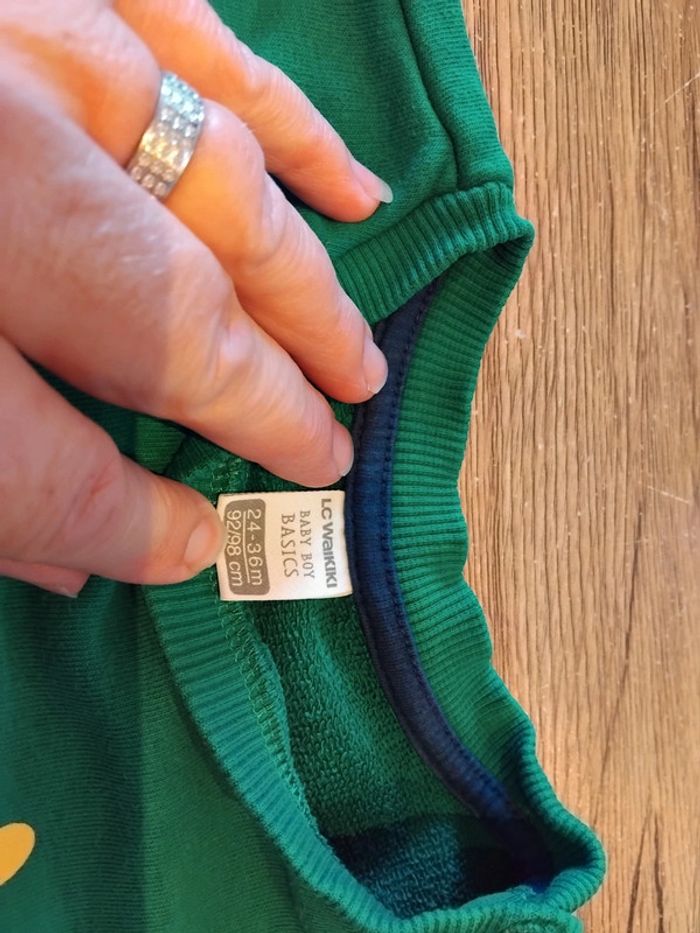 Bonjour, je vends ce sweat vert avec motifs de la marque LC Waikiki taille 24/36mois en très bon état. Lavé maison non fumeur.