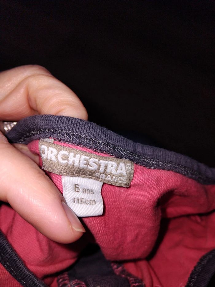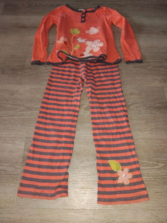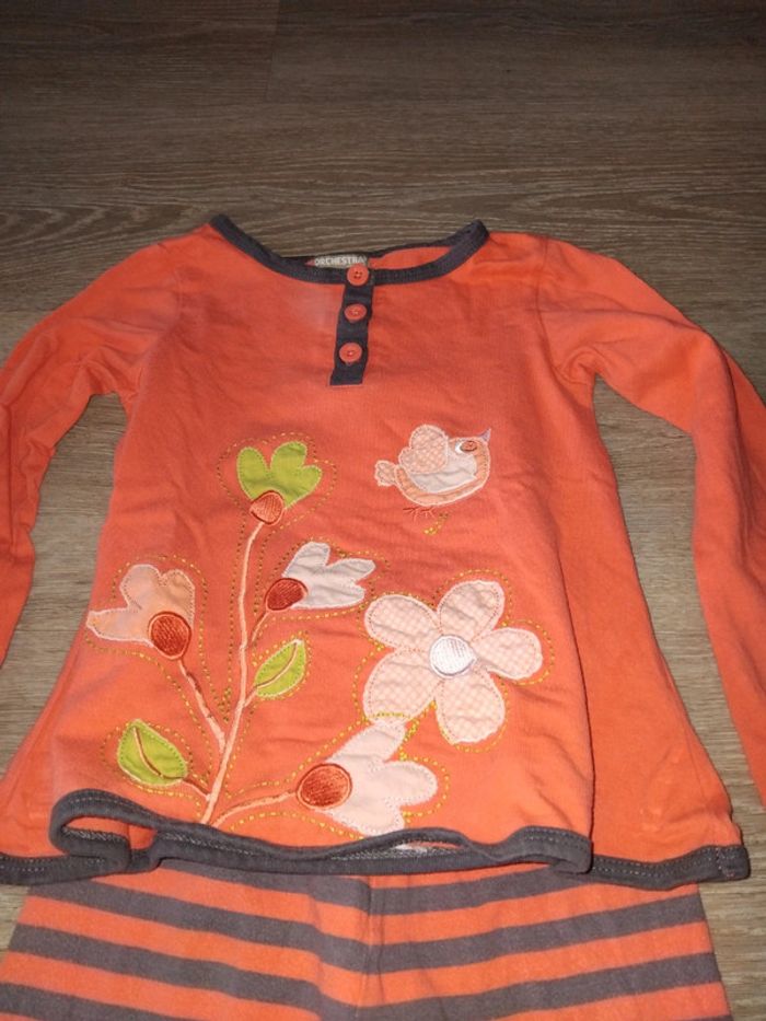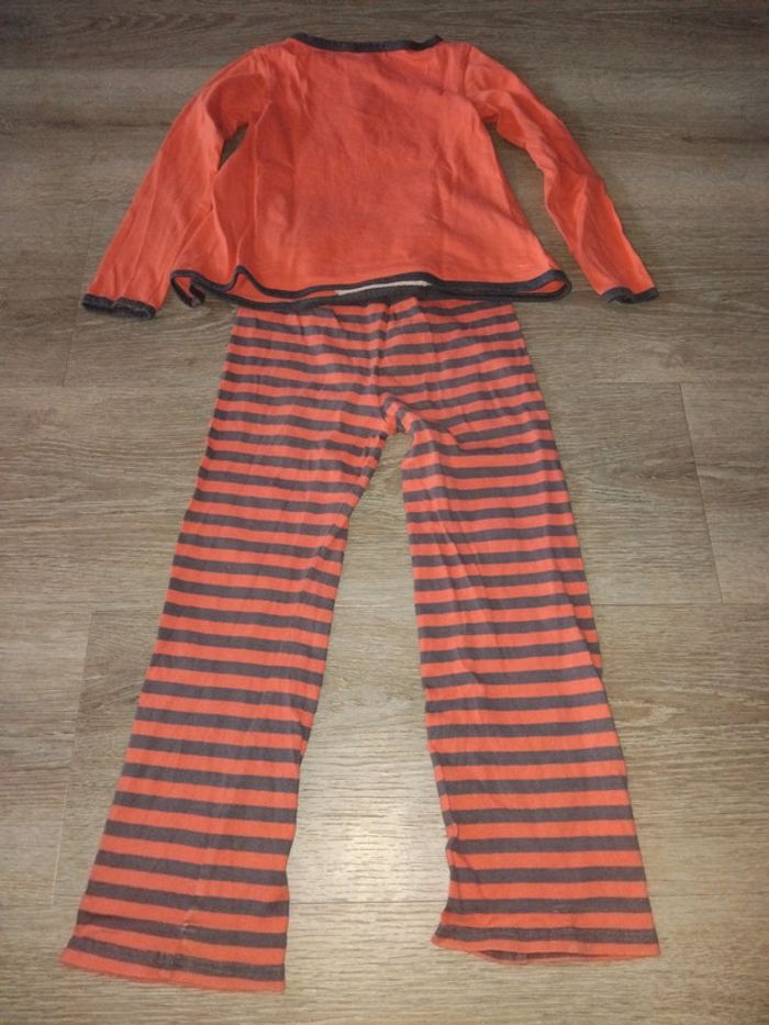 Bonjour, je vends ce pyjama saumon et gris de la marque orchestra taille 6ans en bon état. Une petite tâche sur la jambe mais à peine visible. Lavé maison non fumeur.