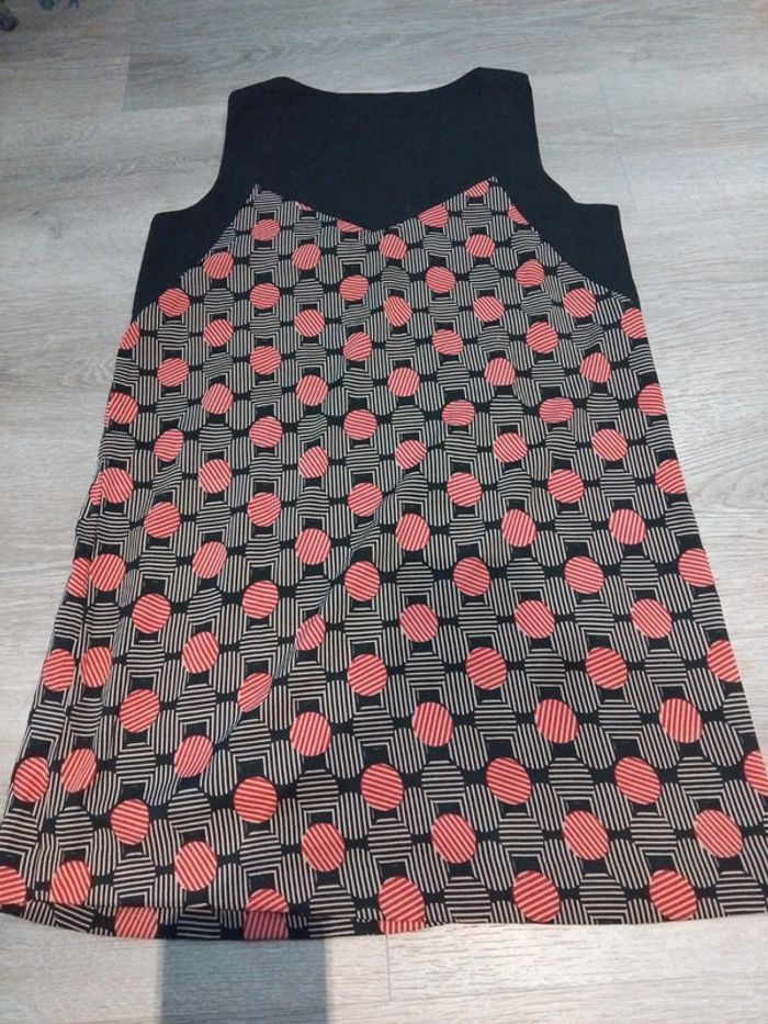 Bonjour, je vends cette robe courte à motifs noirs beige et rouge de la marque An'ge taille M en très bon état. Lavé maison non fumeur.