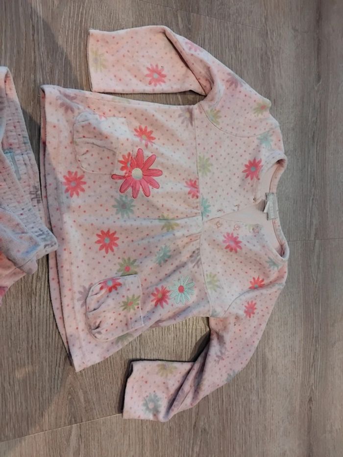 Bonjour, je vends ce pyjama rose en velours avec motifs de la marque Orchestra taille 4ans en bon état. Lavé maison non fumeur.