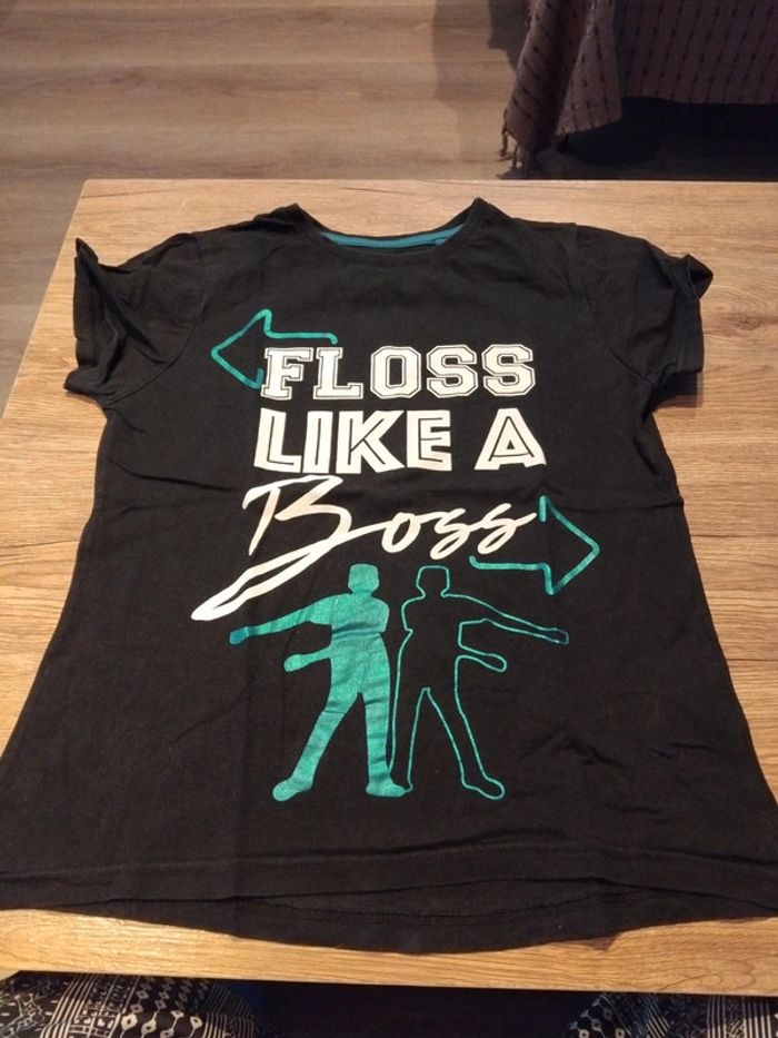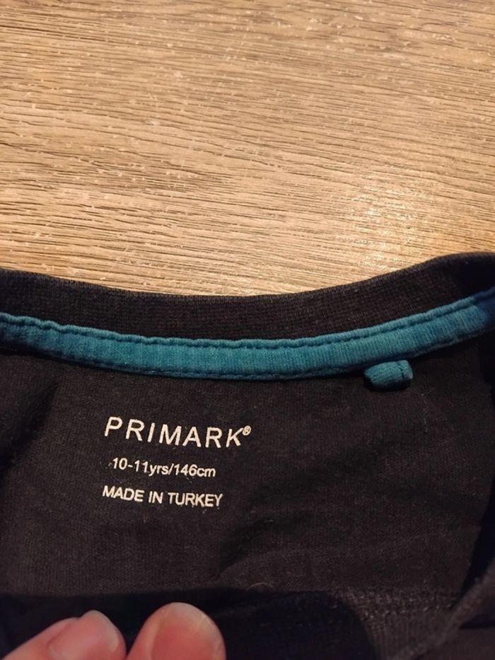 Bonjour, je vends ce tee shirt noir avec motifs de la marque Primark taille 11ans en très bon état. Lavé maison non fumeur.