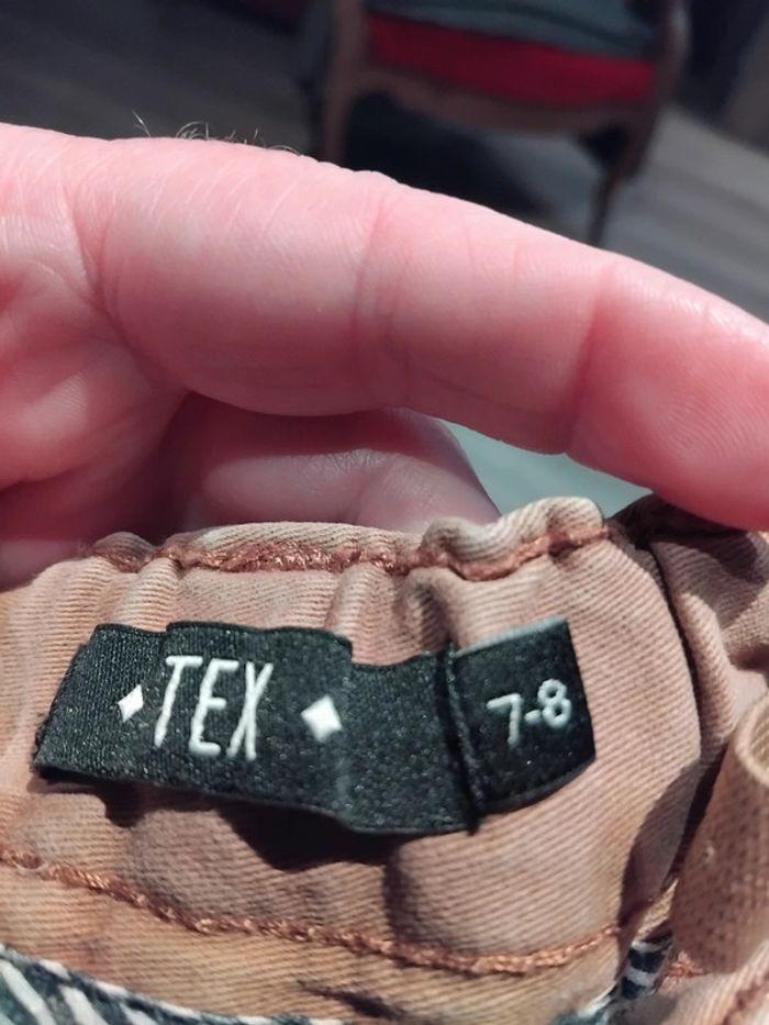 Bonjour, je vends ce pantalon beige de la marque Tex taille 7ans en bon état. (Pas de tâches mais quelques zones plus claires). Lavé maison non fumeur.