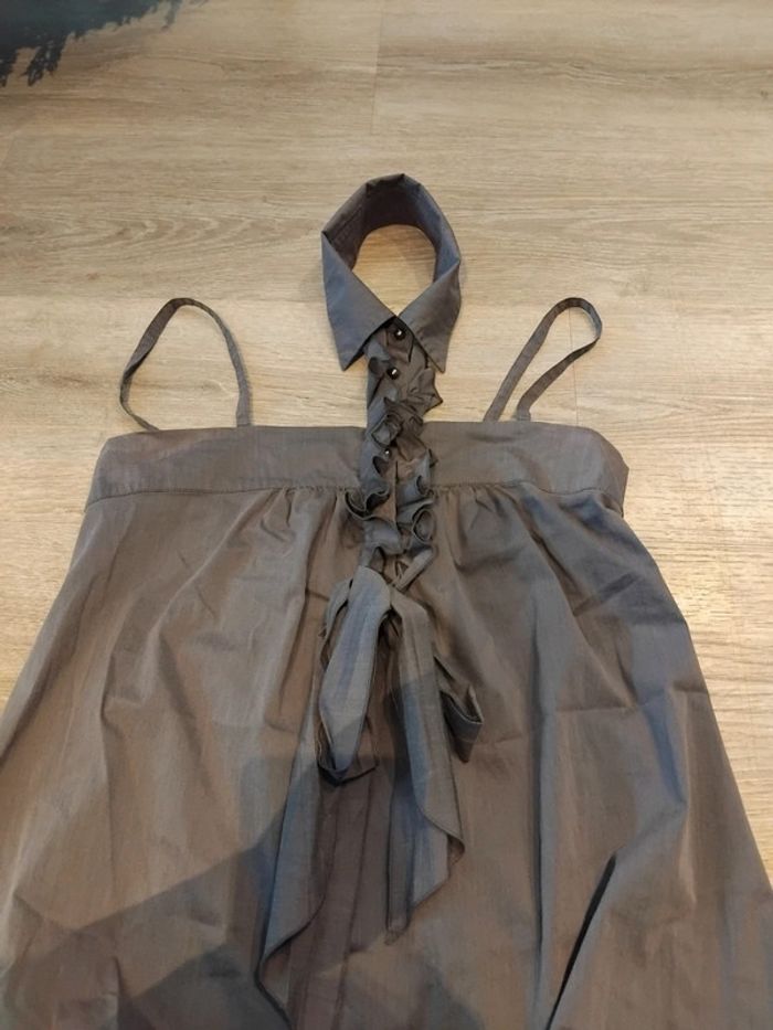 Bonjour, je vends cette robe à bretelles avec une partie à passer autour du cou grise de la marque cop copine taille M en très bon état. Lavé maison non fumeur.