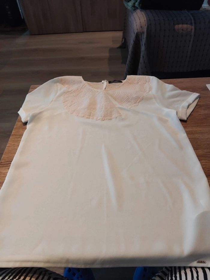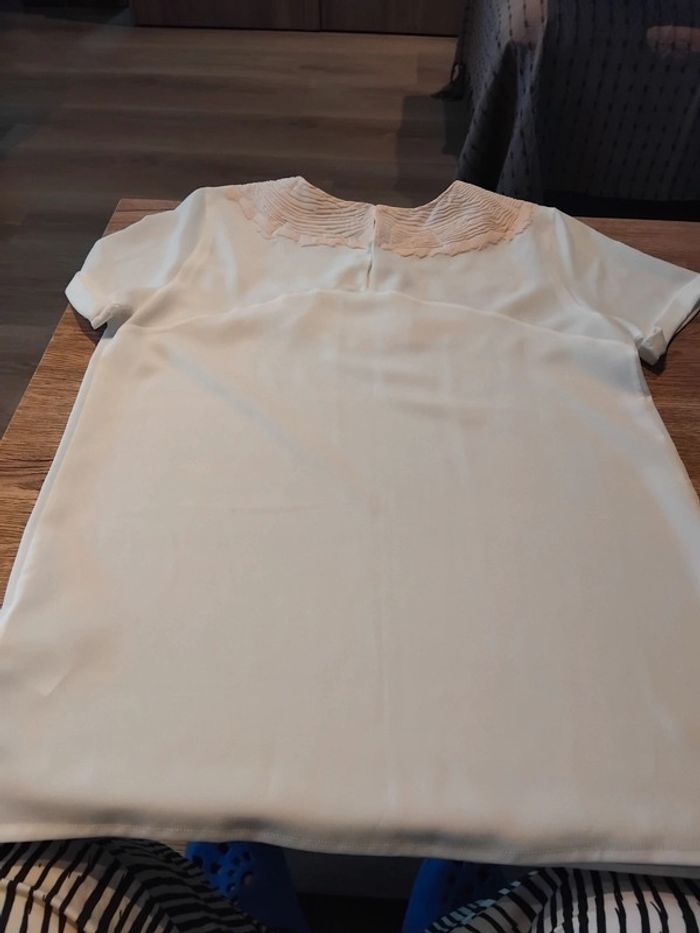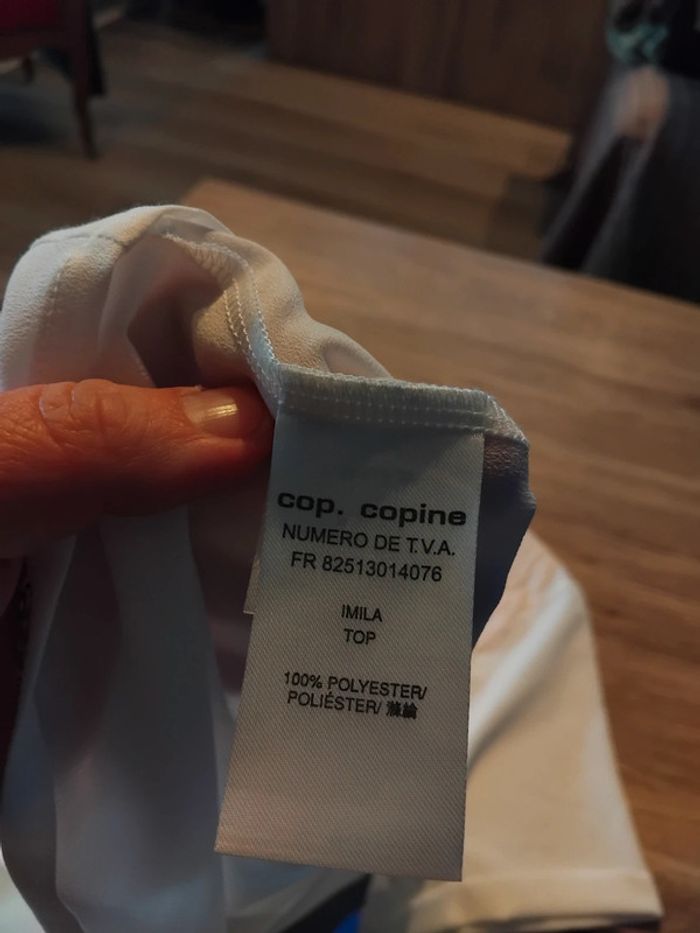 Bonjour, je vends ce tee shirt à manches courtes très fluide blanc et rose de la marque cop copine taille 38 en très bon état. Lavé maison non fumeur.