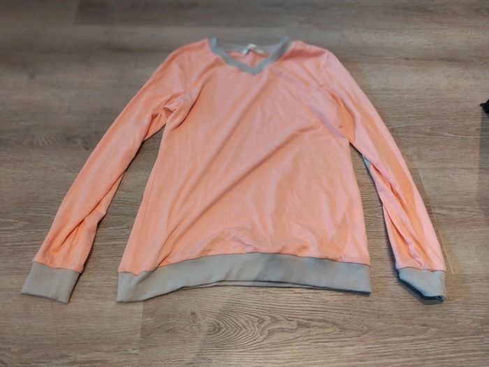 Bonjour, je vends ce haut de pyjama saumon et gris de la marque fashion taille S en bon état. Lavé maison non fumeur.
