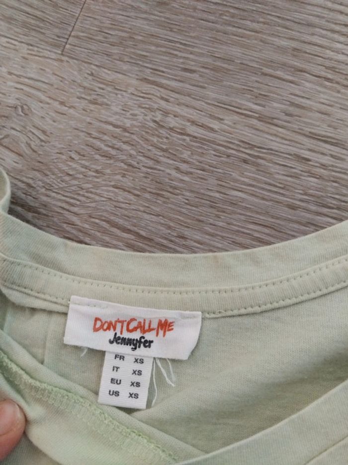 Bonjour, je vends ce tee shirt vert pâle avec motifs de la marque Jennyfer taille XS en très bon état. Lavé maison non fumeur.