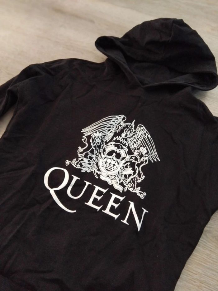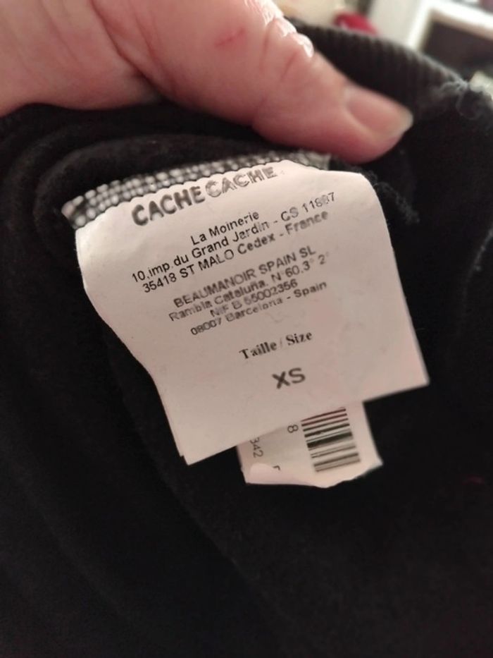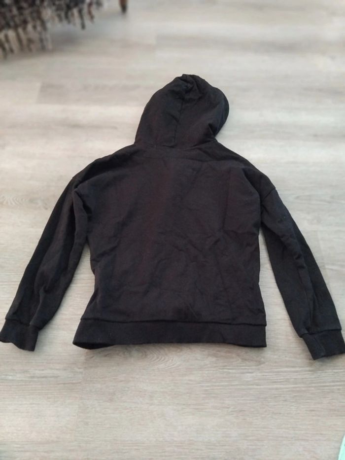 Bonjour, je vends ce sweat à capuche noir motifs blanc de la marque cache cache taille XS en très bon état. Lavé maison non fumeur.