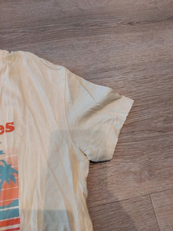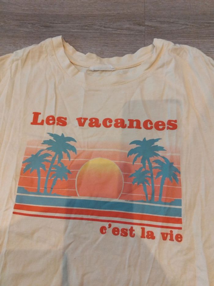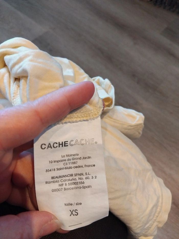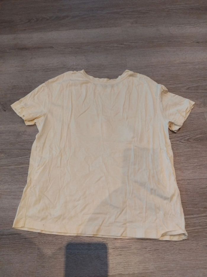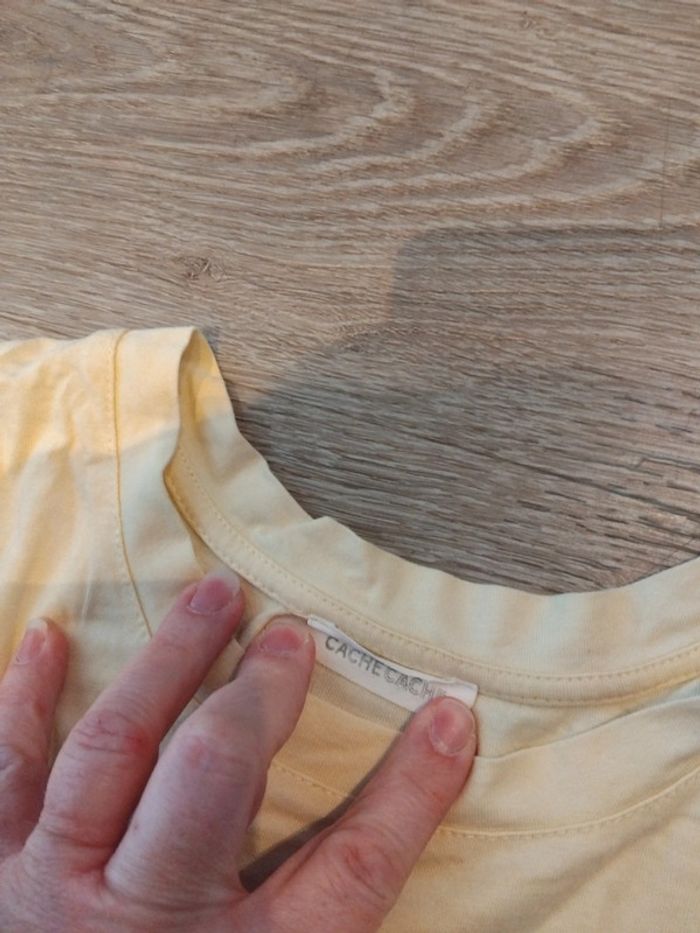 Bonjour, je vends ce tee shirt à manches courtes jaune clair avec motif de la marque cache cache taille XS en très bon état. Lavé maison non fumeur.