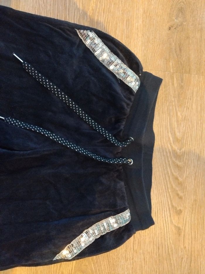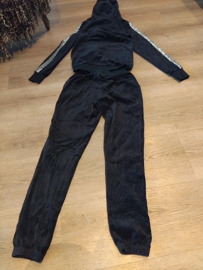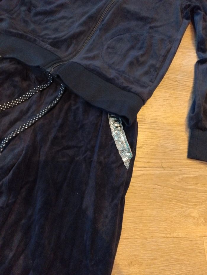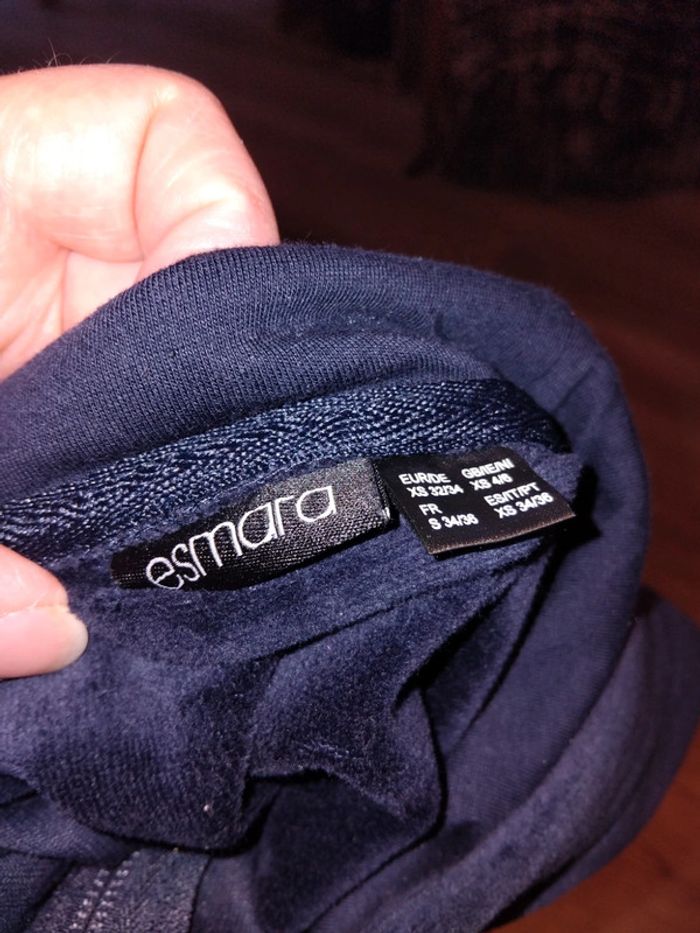 Bonjour, je vends cet ensemble 2 pièces pyjama composé d'un gilet à capuche et d'un pantalon. Marine avec un liseré argentée. De la marque Esmara taille 34 en très bon état. Lavé maison non fumeur.