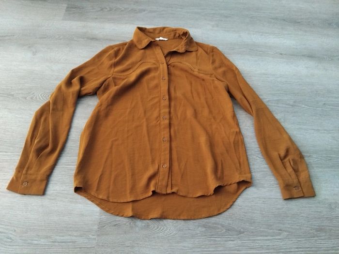 Bonjour, je vends cette chemise ocre de la marque Bizbee taille S en très bon état. Lavé maison non fumeur.