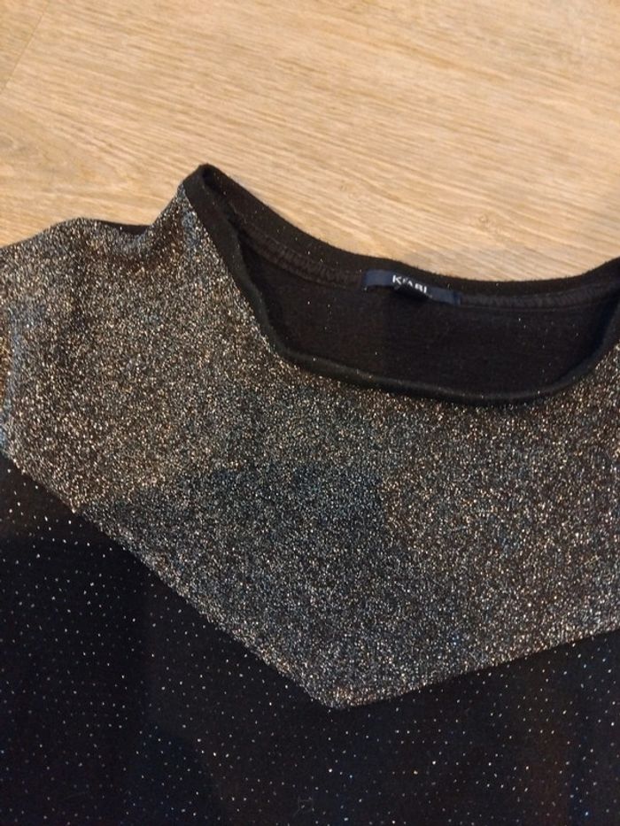 Bonjour, je vends ce tee shirt à manches longues gris et noir pailleté de la marque kiabi taille S en très bon état. Lavé maison non fumeur.