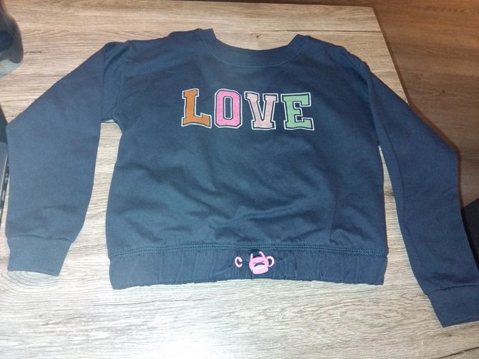Bonjour, je vends ce sweat noir resserable à la taille en bon état. Taille 7/8ans lavé maison non fumeur.