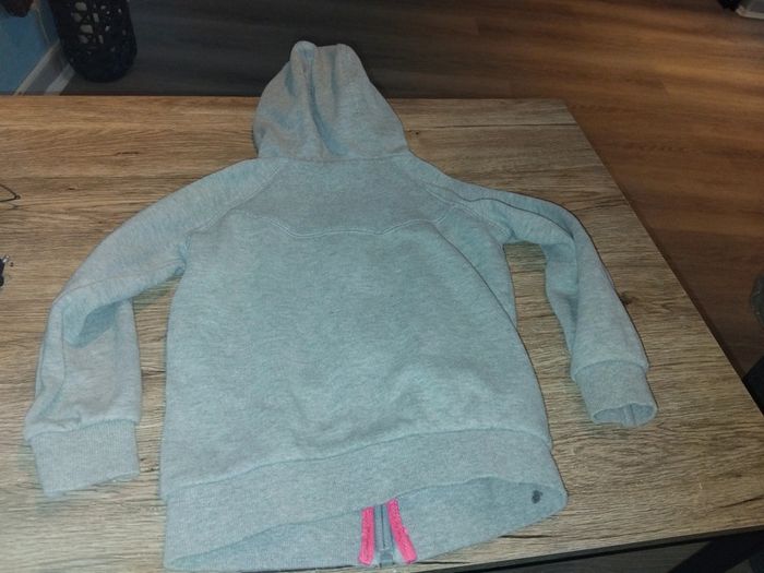 Bonjour, je vends ce gilet a capuche gris et rose de la marque energetics taille 6ans en très bon état. Lavé maison non fumeur.