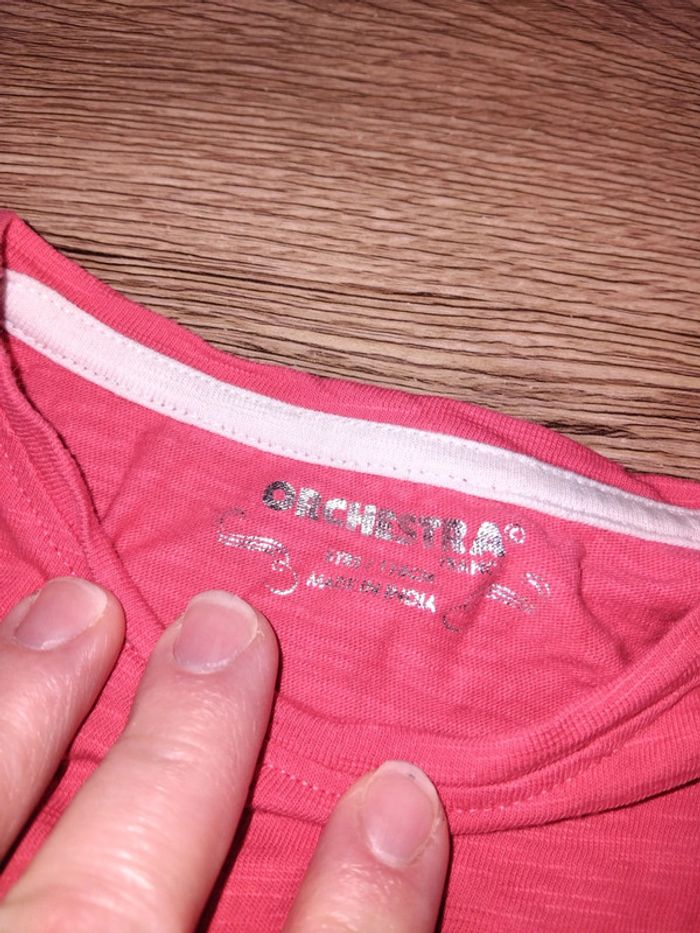 Bonjour, je vends ce tee shirt à manches courtes rose de la marque orchestra taille 6ans en très bon état. Lavé maison non fumeur.