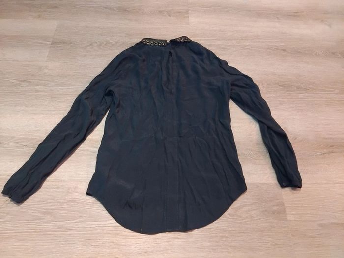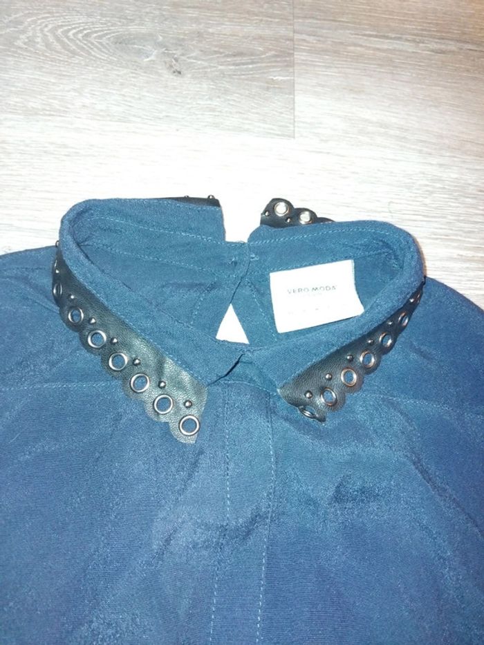 Bonjour, je vends ce tee shirt à manches longues bleu marine avec un col de la marque Vero Moda taille S en très bon état. Lavé maison non fumeur.