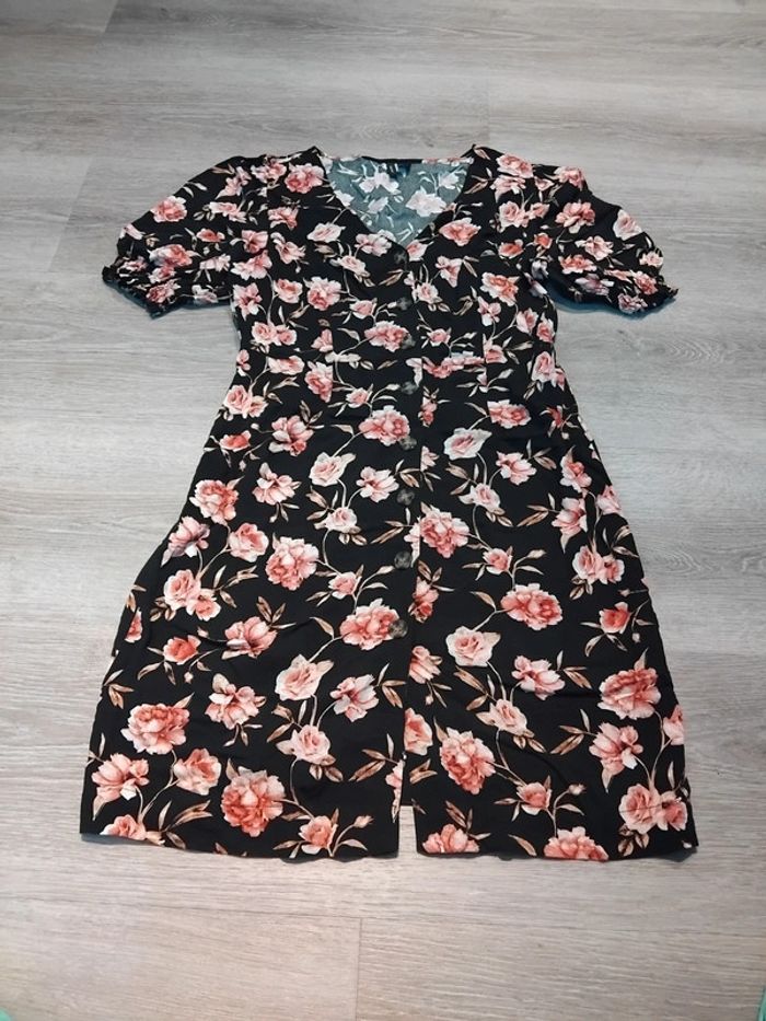 Bonjour, je vends cette robe à manches courtes noire à fleurs roses de la marque Vero Moda taille S en très bon état. Lavé maison non fumeur.