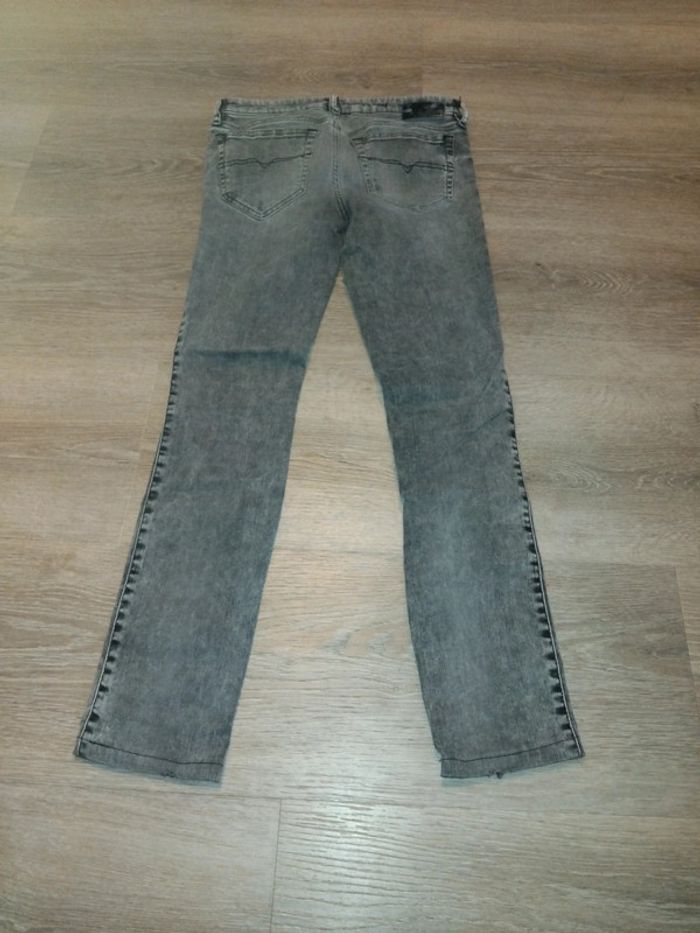 Bonjour, je vends ce jean gris de la marque Diesel taille 36 en très bon état. Juste le simili un oeu abîmé à l'arrière du jean. Lavé maison non fumeur.