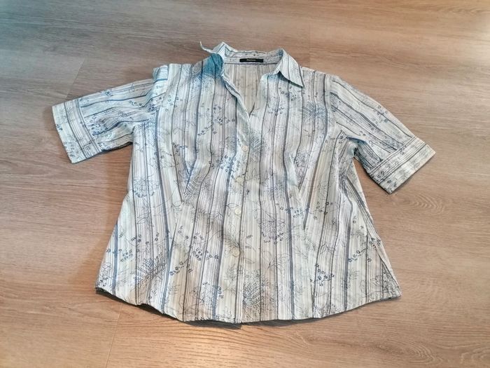 Bonjour, je vends cette chemise bleue et blanche à motifs de la marque Burton taille 42 en très bon état.